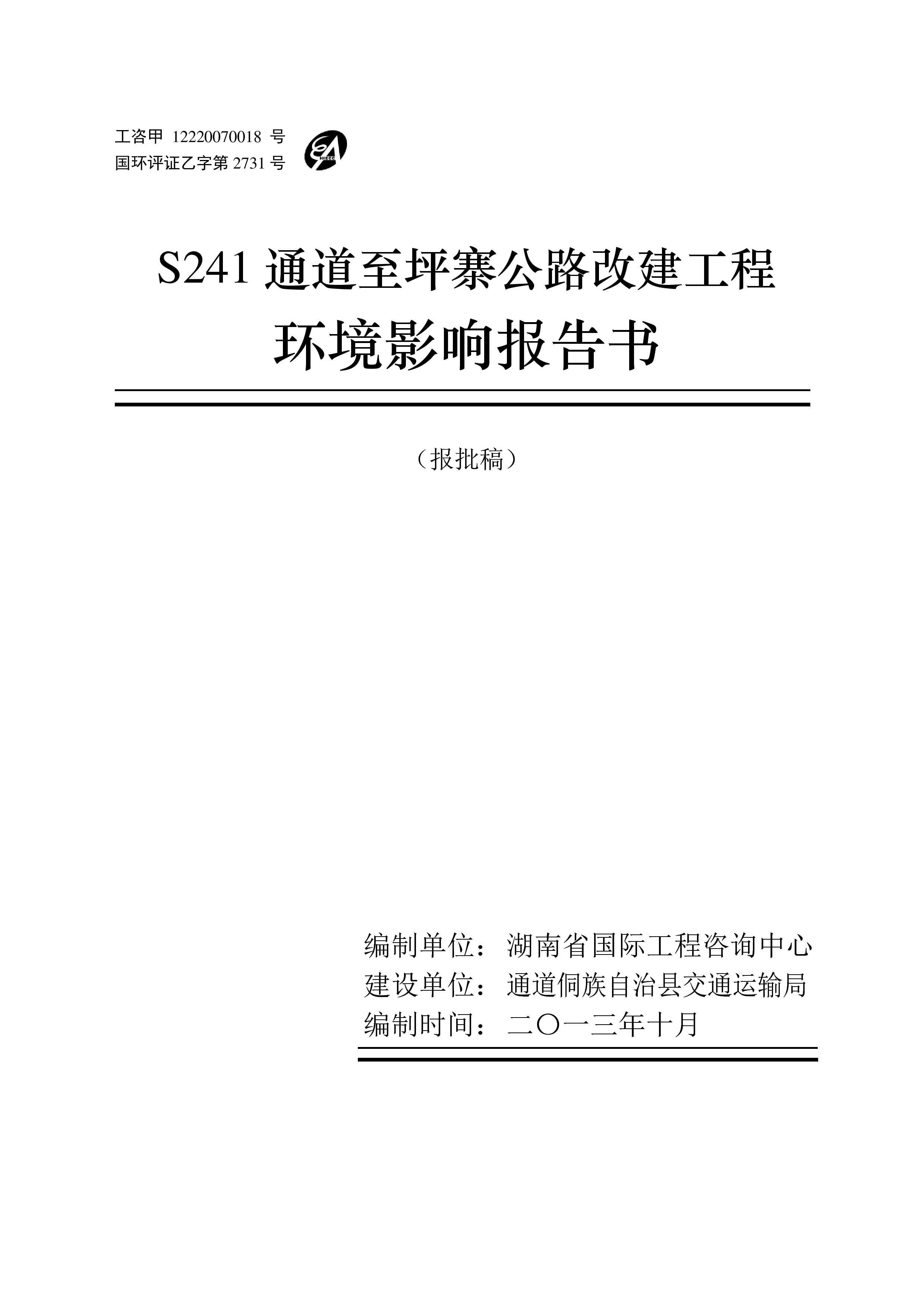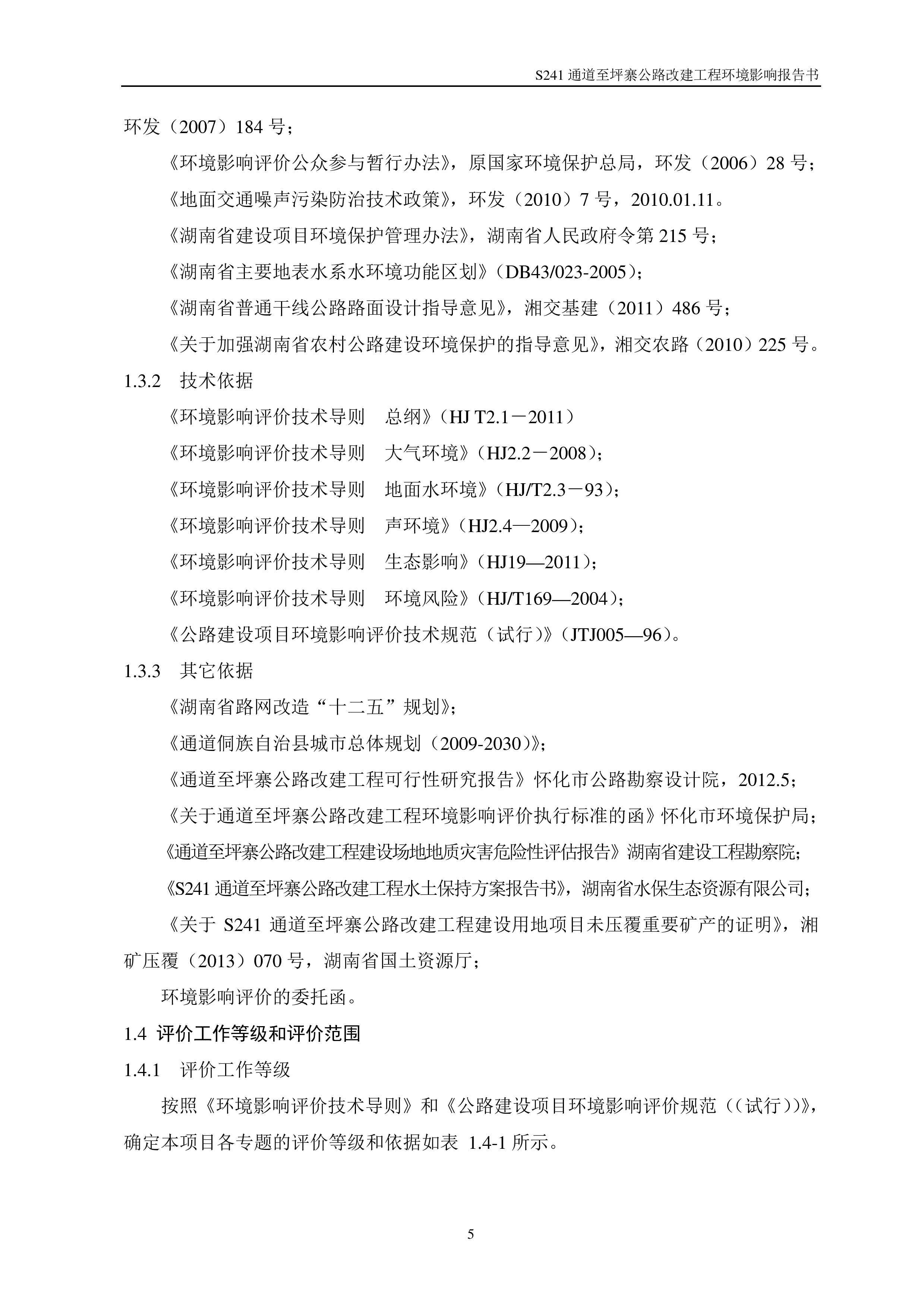 通道至坪寨公路改建工程環(huán)境影響報告書(報批稿)