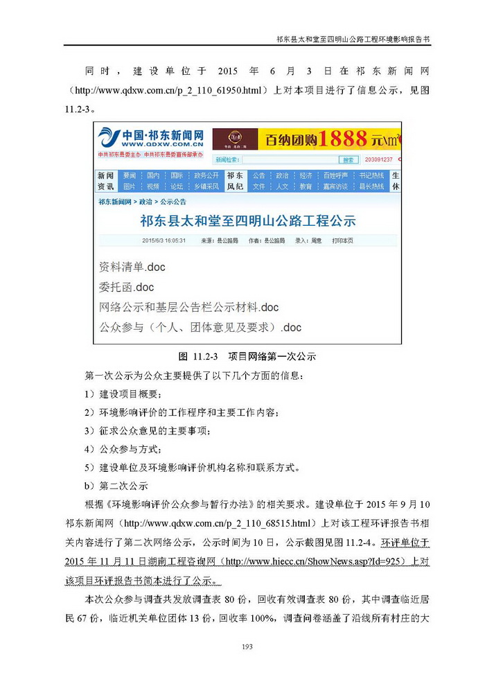 《祁東縣太和堂至四明山公路工程環(huán)評(píng)報(bào)告書》全本公示