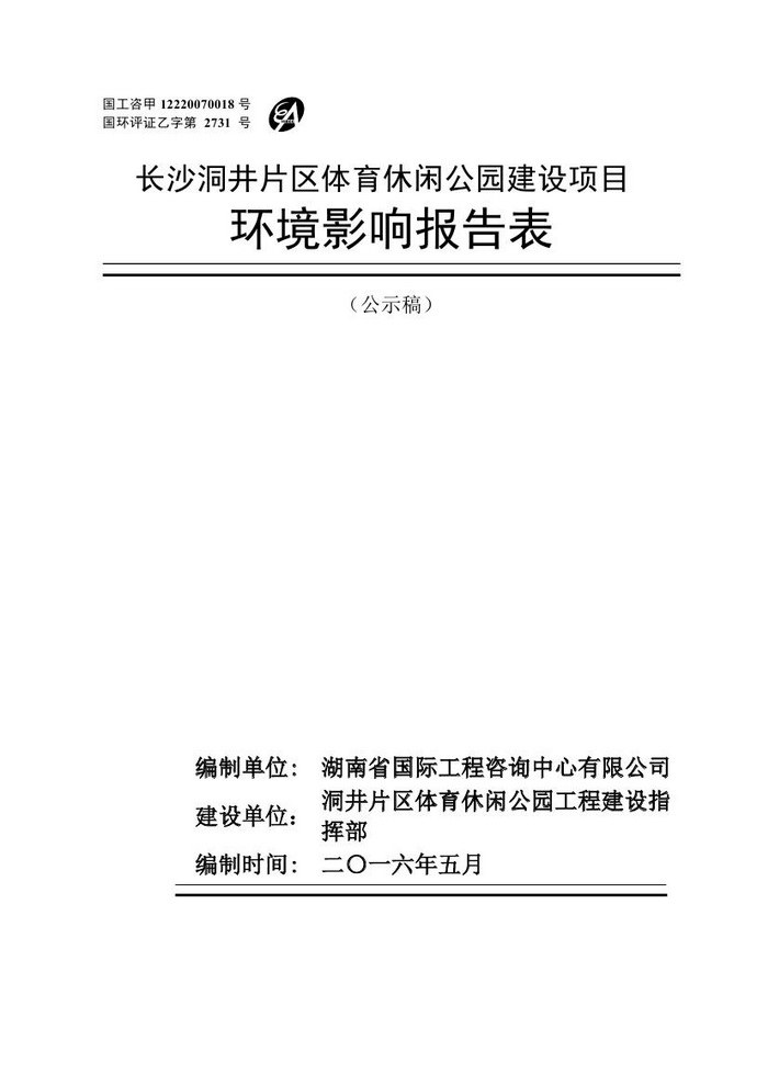 長沙洞井片區(qū)體育休閑公園建設(shè)項(xiàng)目環(huán)境影響報(bào)告表(公示稿)