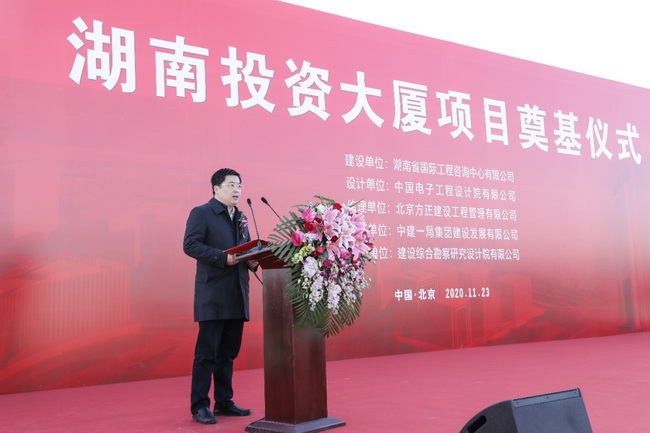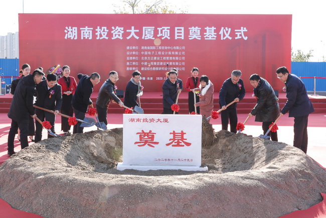 11月23日上午,(北京)湖南投資大廈項(xiàng)目奠基儀式在北京市豐臺(tái)區(qū)麗澤金融商務(wù)區(qū)隆重舉行。湖南省發(fā)展改革委黨組成員、湘西辦主任杜中華,湖南湘投控股集團(tuán)公司黨委書記、董事長鄧軍民,黨委副書記、董事張崇政,北京麗澤金融商務(wù)區(qū)管委會(huì)副主任關(guān)芳,北京麗澤金融商務(wù)區(qū)控股公司董事長楊友強(qiáng),湖南省國際工程咨詢公司黨委書記、董事長詹瓊雷,黨委副書記、總經(jīng)理曹雄鷹,中建一局(集團(tuán))有限公司副總經(jīng)理左強(qiáng),中建一局建設(shè)發(fā)展有限公司董事長廖鋼林等近百人出席奠基儀式。儀式由張崇政副書記主持。