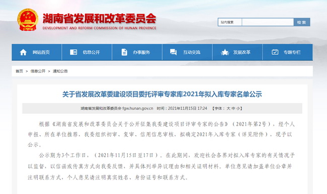 近日,根據(jù)《湖南省發(fā)展和改革委員會(huì)關(guān)于公開征集我委建設(shè)項(xiàng)目評(píng)審專家的公告》(2021年第2號(hào)),經(jīng)省發(fā)展改革委審核研究決定,省發(fā)展改革委建設(shè)項(xiàng)目委托評(píng)審專家?guī)?021年擬入庫專家名單正式發(fā)布,我司謝盛文等19名專家成功入選。