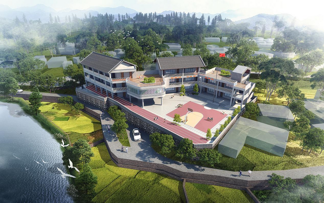 磨老小學(xué)地處湘黔邊區(qū),位置特殊,責(zé)任重大。項目自開工以來,面對基礎(chǔ)條件差,規(guī)劃標(biāo)準高,時間緊等諸多挑戰(zhàn),民建及市政院設(shè)計團隊迎難而上,主動作為,高標(biāo)準、嚴要求,優(yōu)化資源配置,倒排工期、責(zé)任到人,在2個月內(nèi)優(yōu)質(zhì)高效地完成了項目的初步設(shè)計和施工圖設(shè)計,為邊區(qū)人民眾遞交了一份滿意的答卷。最終建成的磨老小學(xué)規(guī)劃用地面積2191平方米,建筑占地680 平方米,總建筑面積達1847 平方米,設(shè)計容納學(xué)生共175人,此外新建了學(xué)生運動場、食堂和學(xué)生就餐間,可完全滿足師生教育教學(xué)和生活的需要。